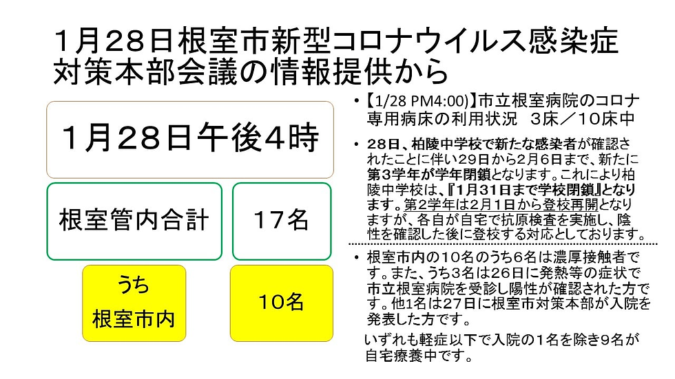 1月28日午後4時:根室市新型コロナウイルス対策本部会議の情報提供から