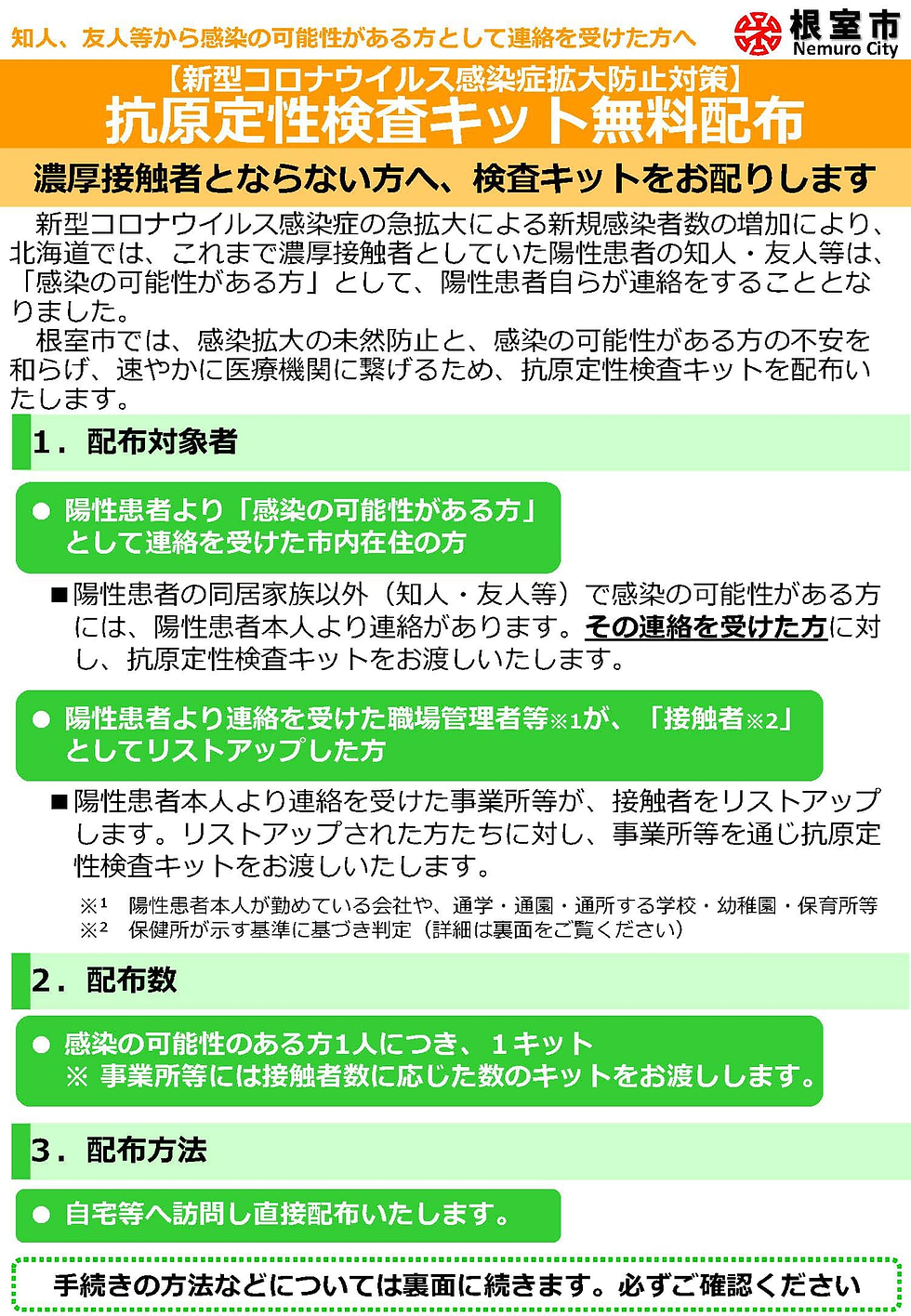 ●根室市抗原定性 検査キット配付事業の抗原検査キットの配付 について ●抗原検査キット配布のチラシ